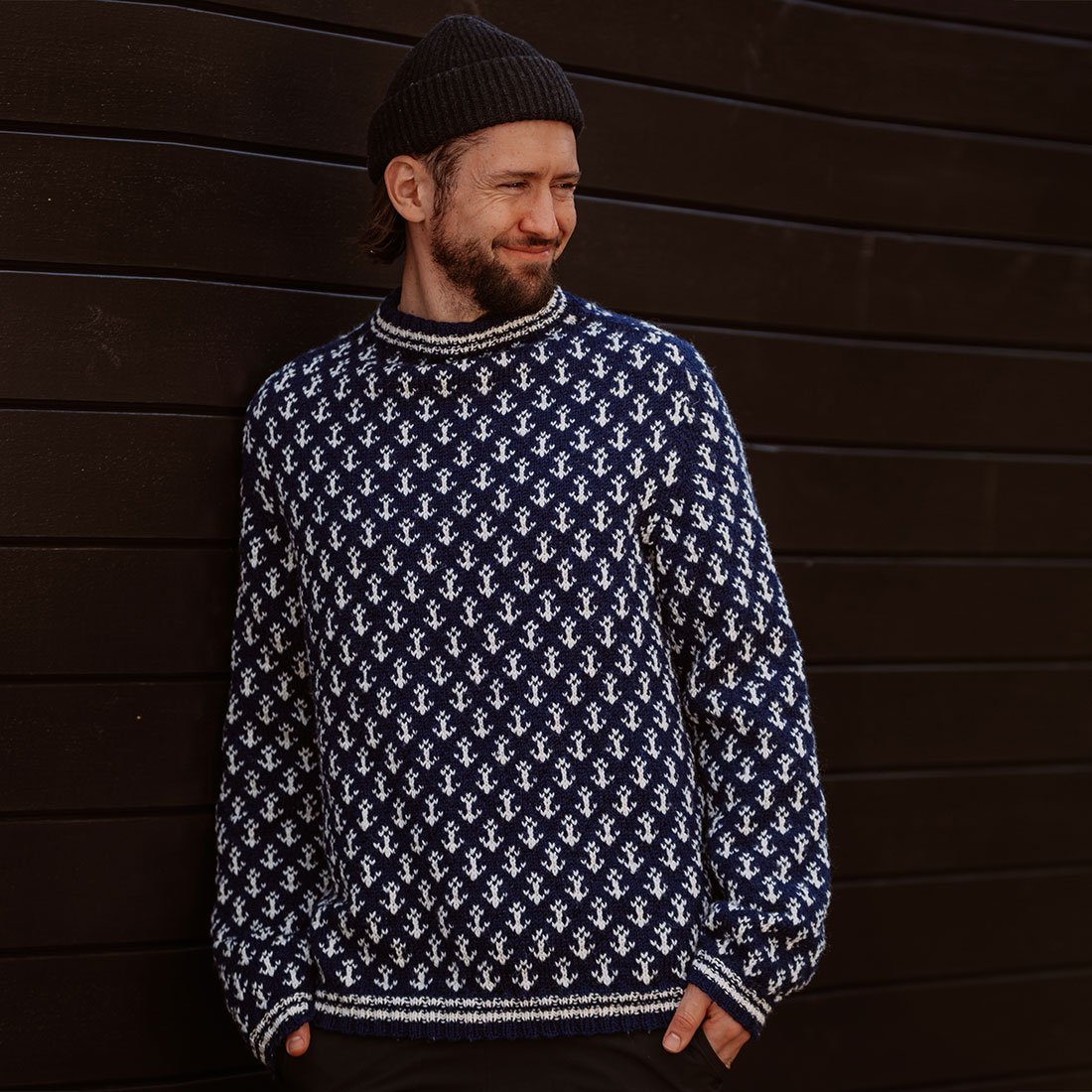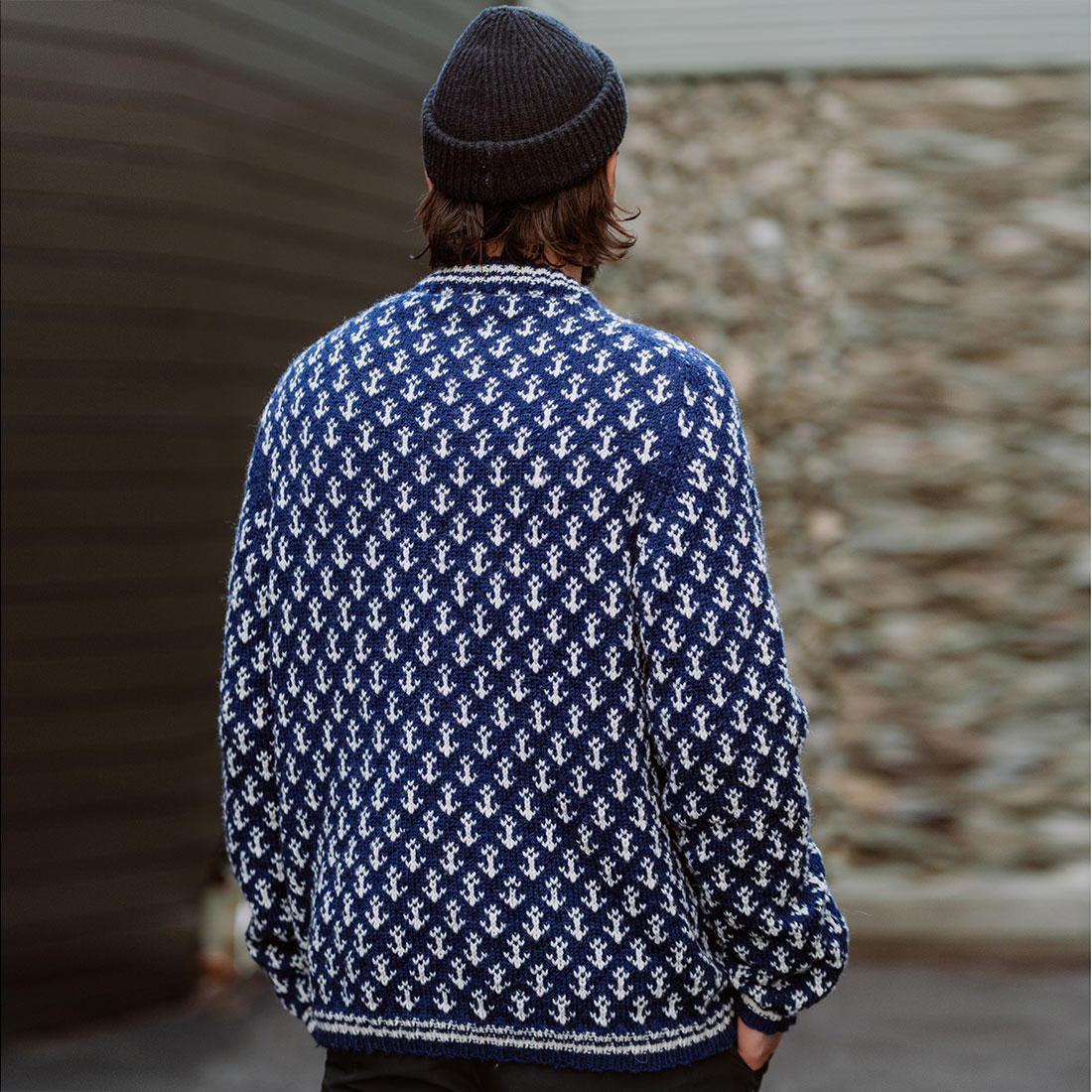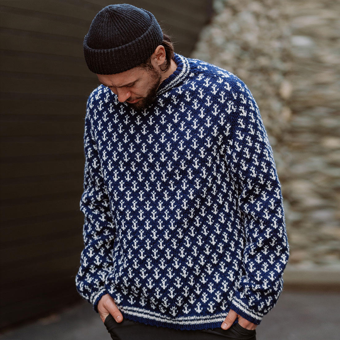 Set sail in timeless maritime style with this navy blue captain sweater, featuring a striking white anchor pattern. Crafted from soft, high-quality wool, this sweater provides warmth and comfort, perfect for chilly days by the sea or cozy evenings by the fire. The bold navy background captures the essence of classic nautical fashion, while the crisp white anchors add a touch of maritime charm. With a relaxed fit, ribbed cuffs, and a crew neckline, this sweater is both practical and stylish—ideal for sailors, ocean lovers, and coastal adventurers.