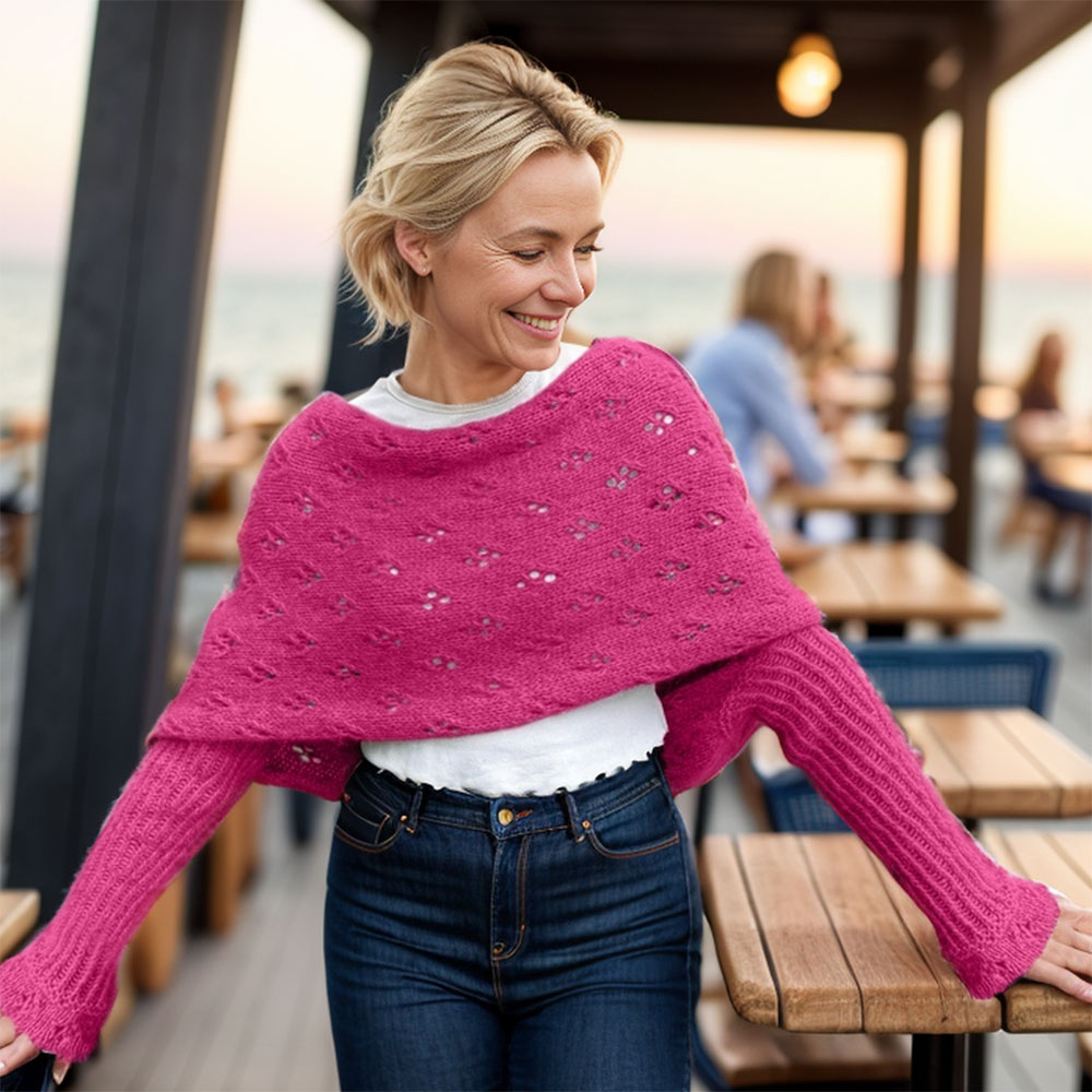 Create the elegant Eyelet Sweater Scarf with this knitting pattern, designed for fantastically soft and airy blow yarn. Featuring a delicate eyelet stitch, this scarf is lightweight yet cozy, perfect for adding a touch of sophistication to your wardrobe. Ideal for knitters who love a balance of simplicity and style.