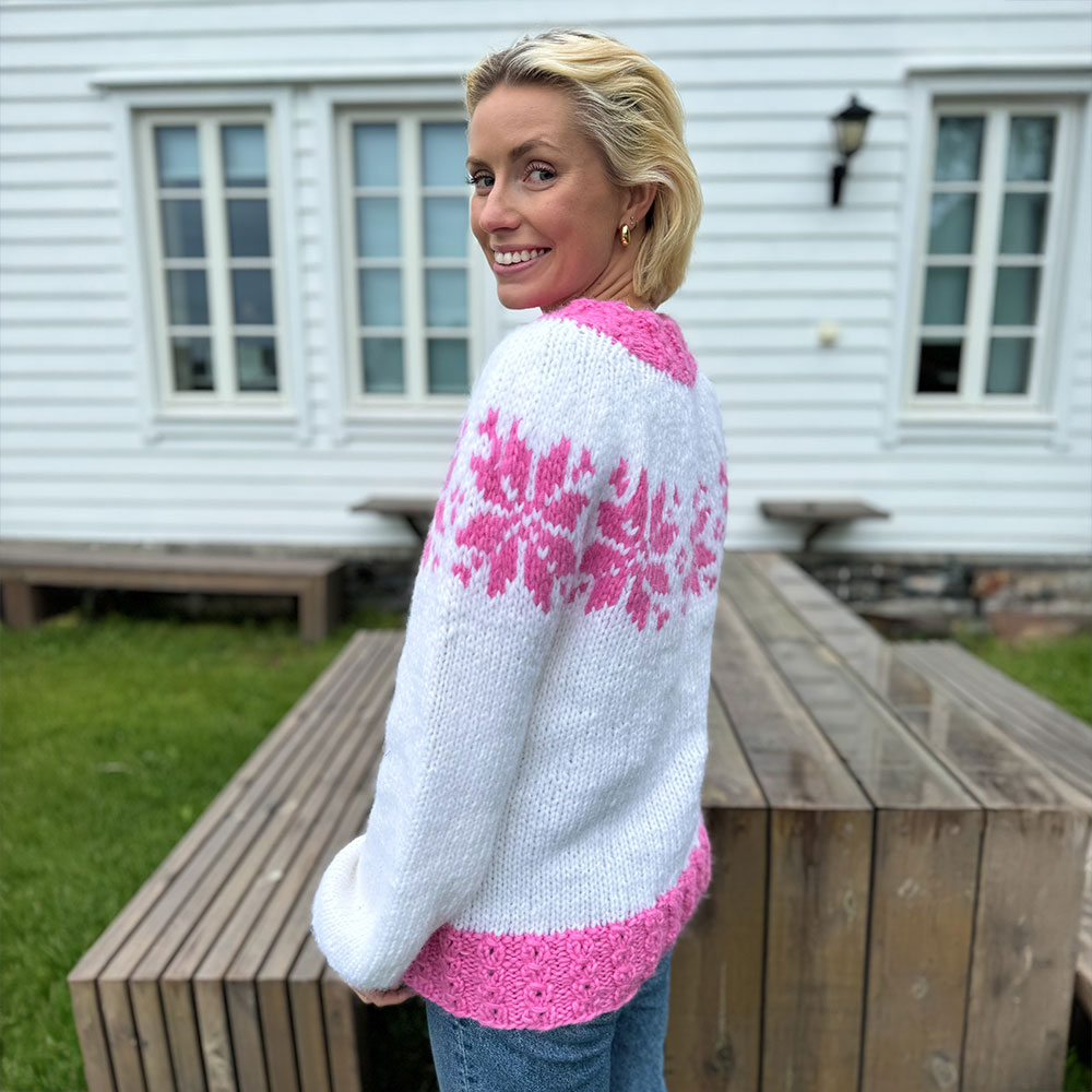 10 sts in stockinette stitch with two strands on 9 mm (US 13) needles = 10 cm / 4 in