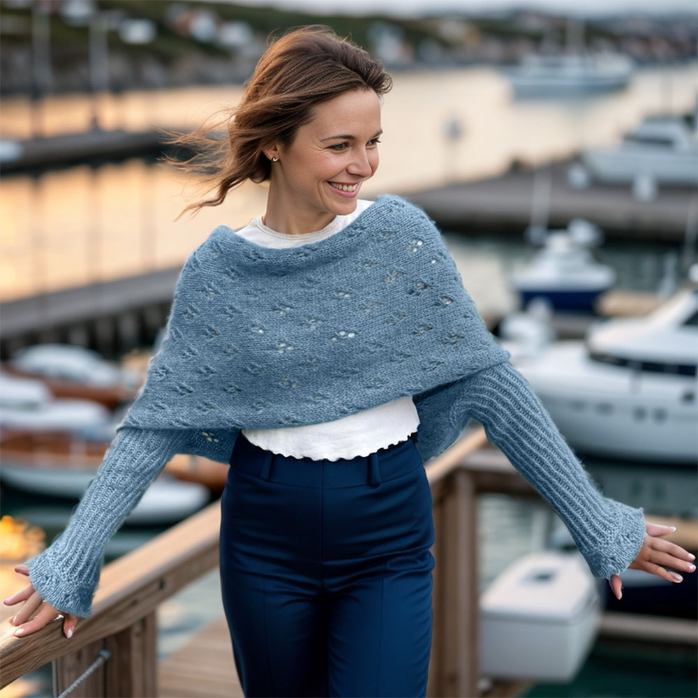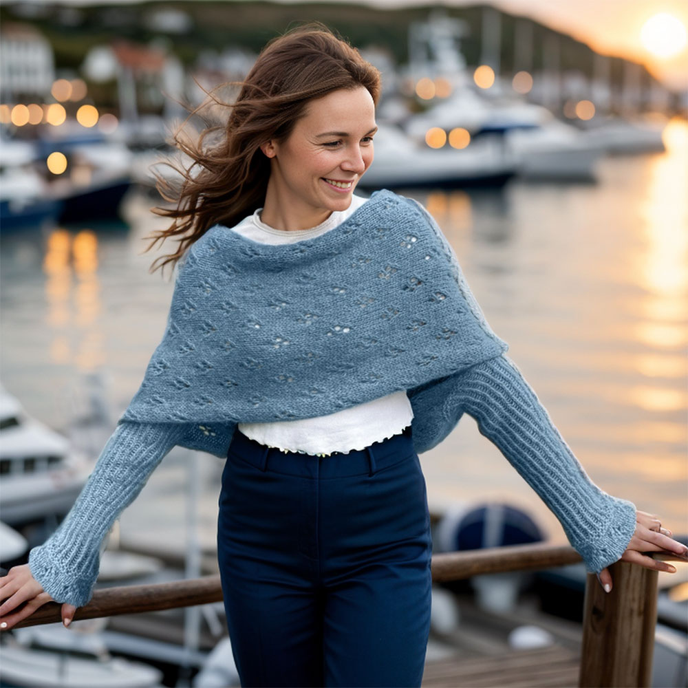 Create the elegant Eyelet Sweater Scarf with this knitting pattern, designed for fantastically soft and airy blow yarn. Featuring a delicate eyelet stitch, this scarf is lightweight yet cozy, perfect for adding a touch of sophistication to your wardrobe. Ideal for knitters who love a balance of simplicity and style.
