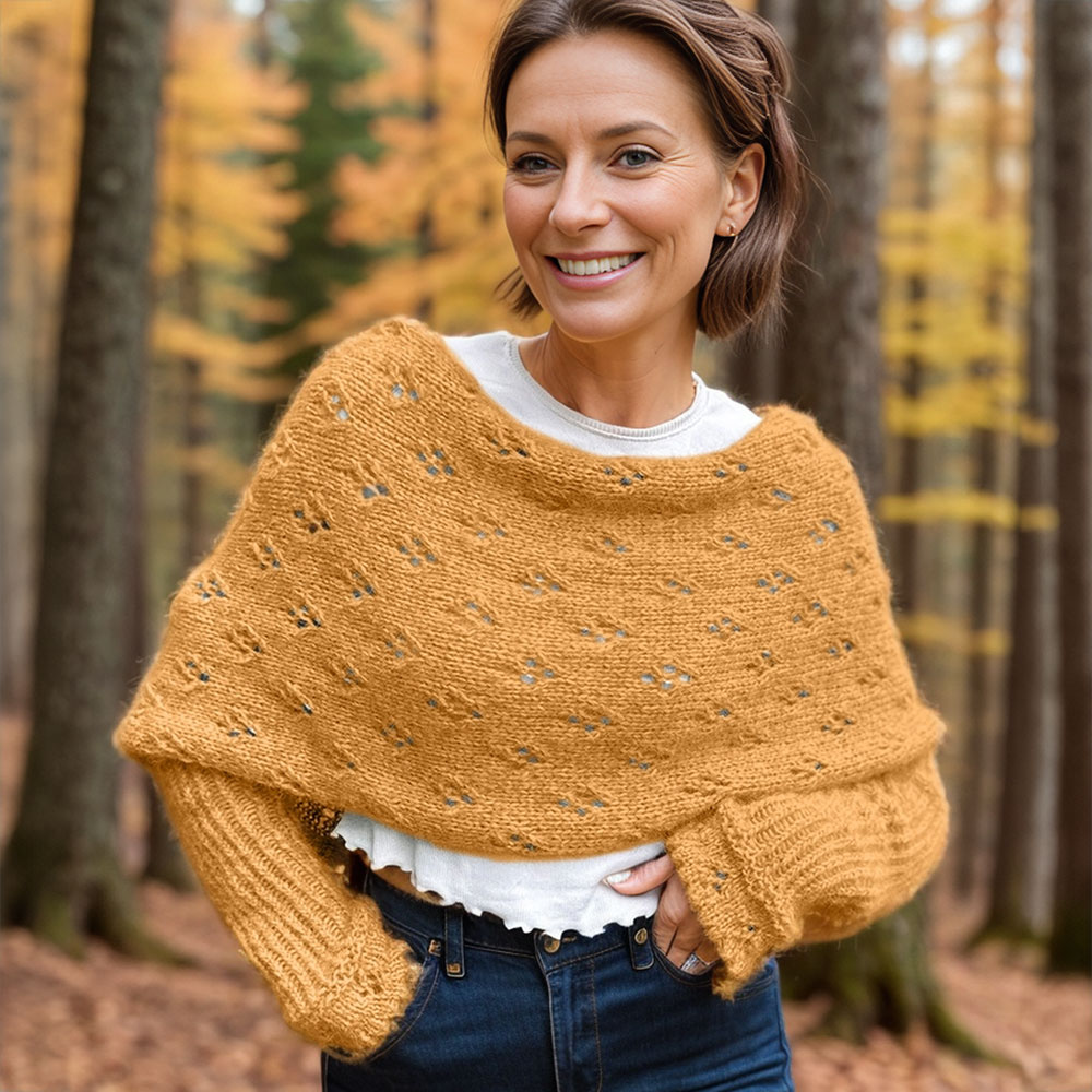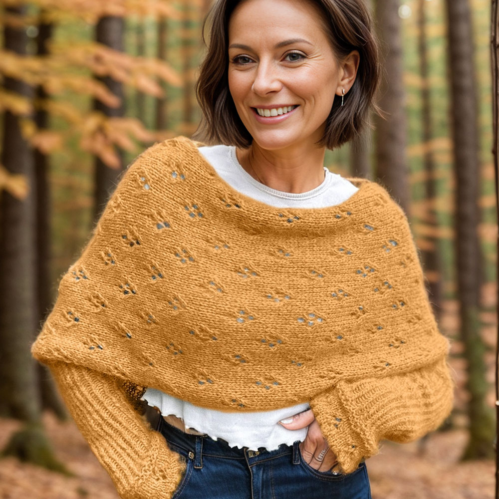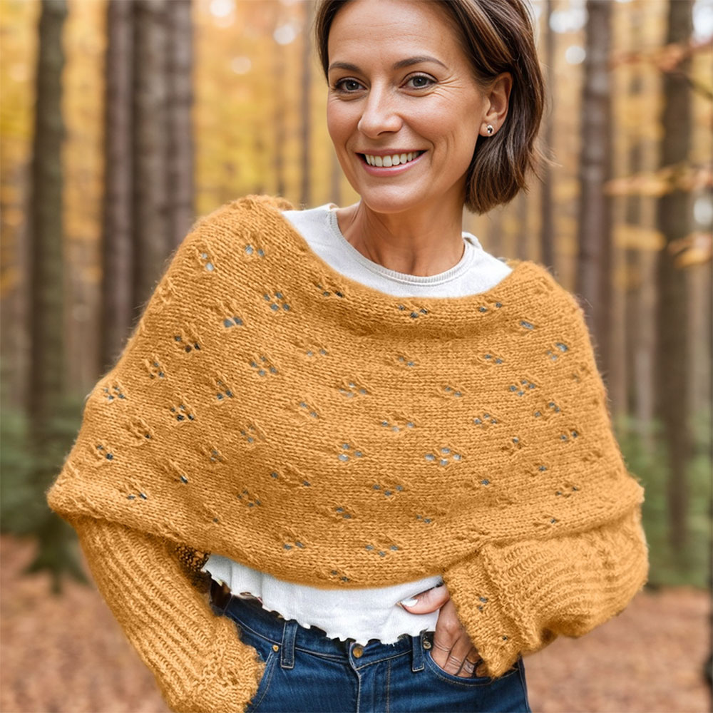 Create the elegant Eyelet Sweater Scarf with this knitting pattern, designed for fantastically soft and airy blow yarn. Featuring a delicate eyelet stitch, this scarf is lightweight yet cozy, perfect for adding a touch of sophistication to your wardrobe. Ideal for knitters who love a balance of simplicity and style.