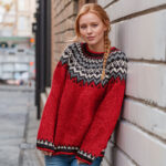 Color 1: 360 – red: 5 (6) 6 (7) 7 (8) skeins