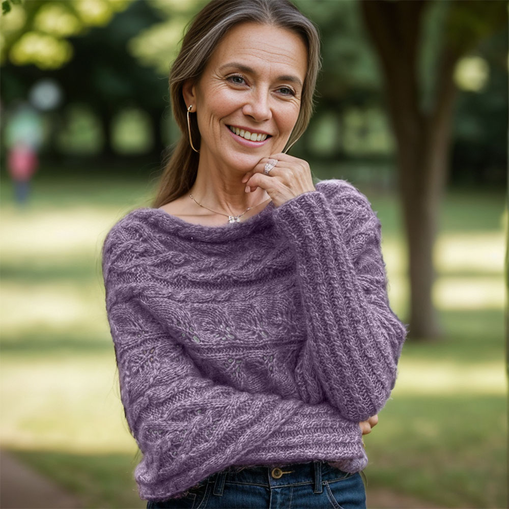 This purple-colored Leafy Sweater Scarf is a true statement piece. The premium fiber blend ensures exceptional softness, while the nature-inspired leaf design adds a touch of sophistication. A perfect accessory for chilly days
