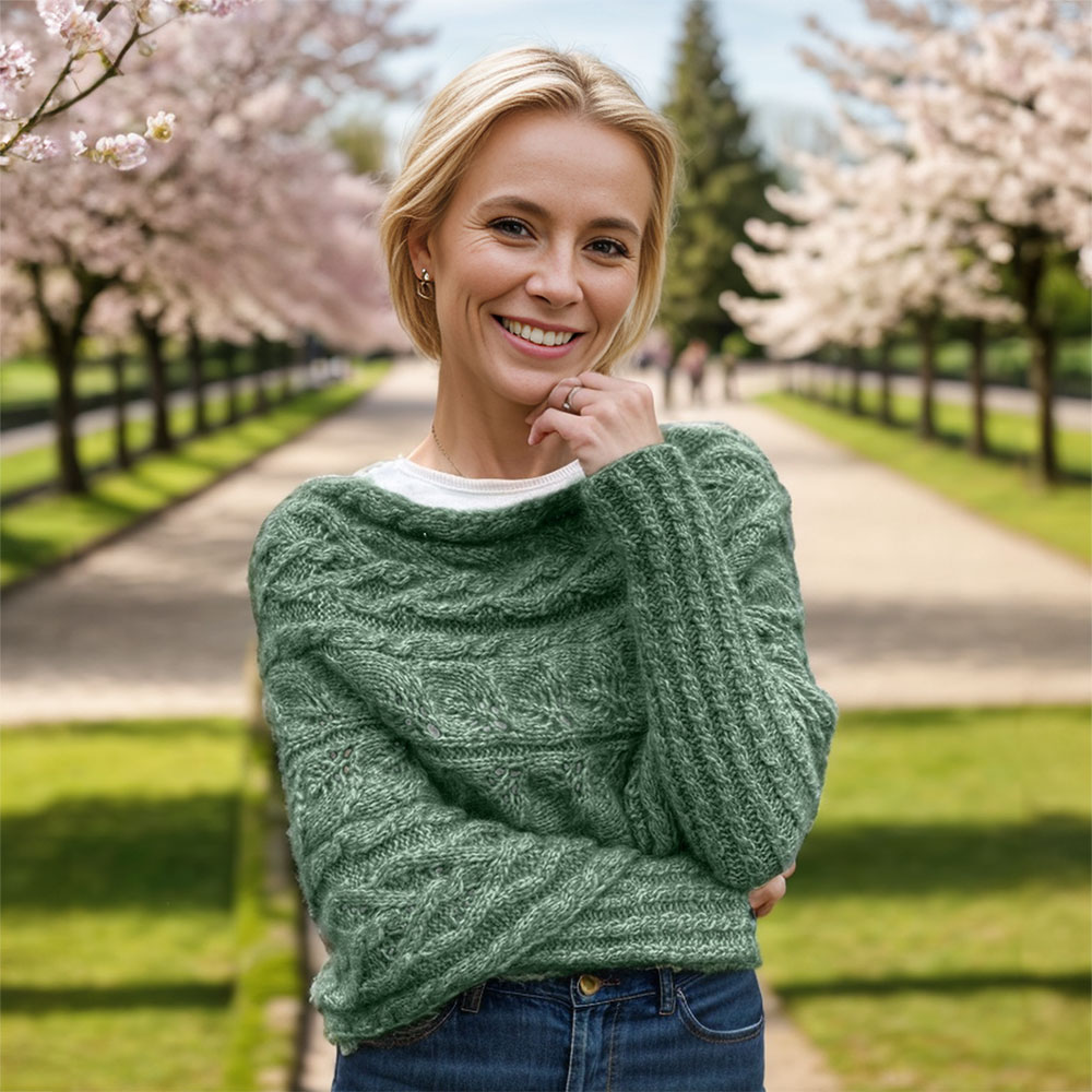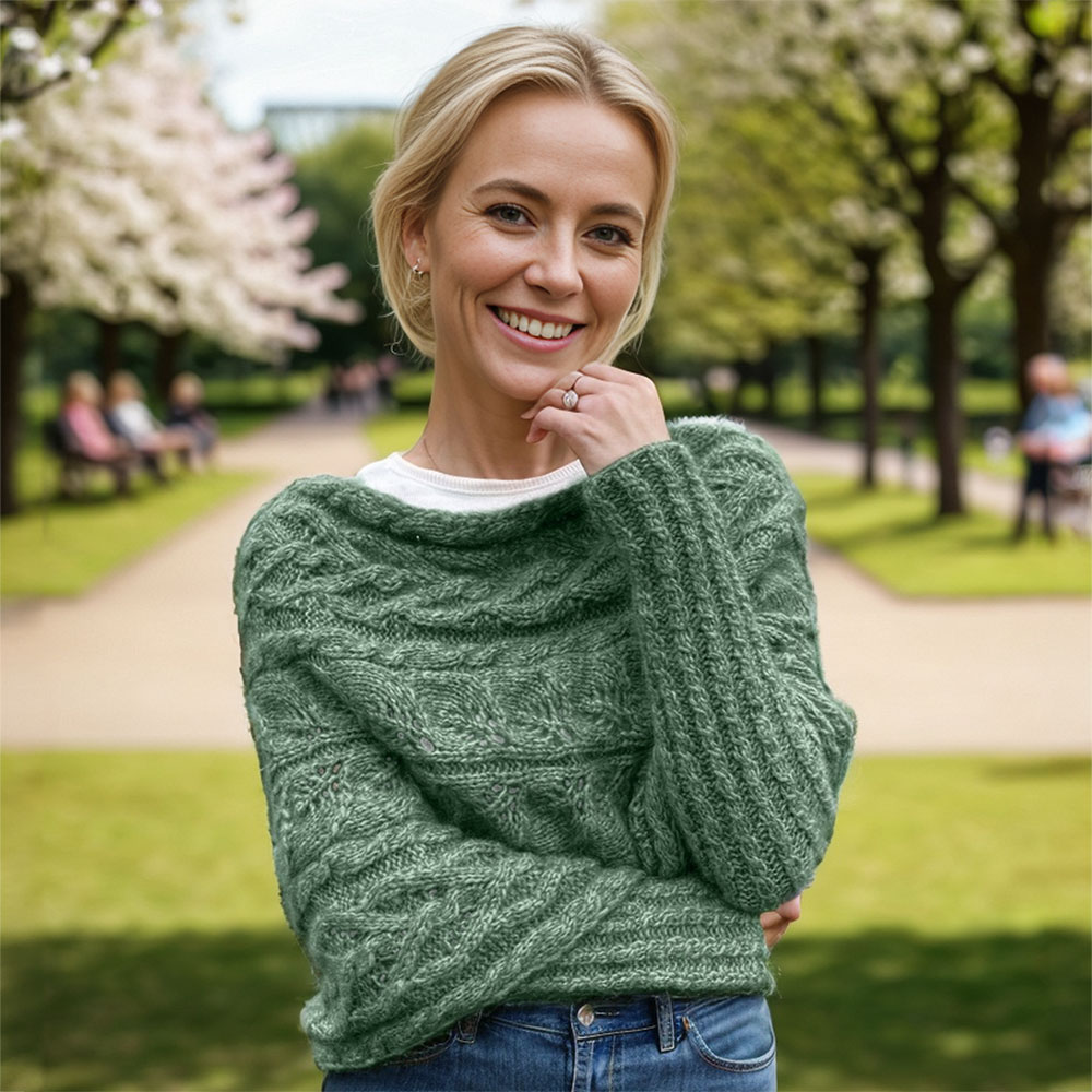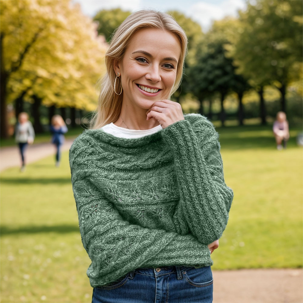 Soft, warm, and incredibly cozy, this sweater scarf feels like a gentle hug. The blend of premium fibers ensures durability without sacrificing comfort. With its delicate leaf design, it brings both warmth and beauty. Make it in a deep forest green, perfect for autumn and winter days.