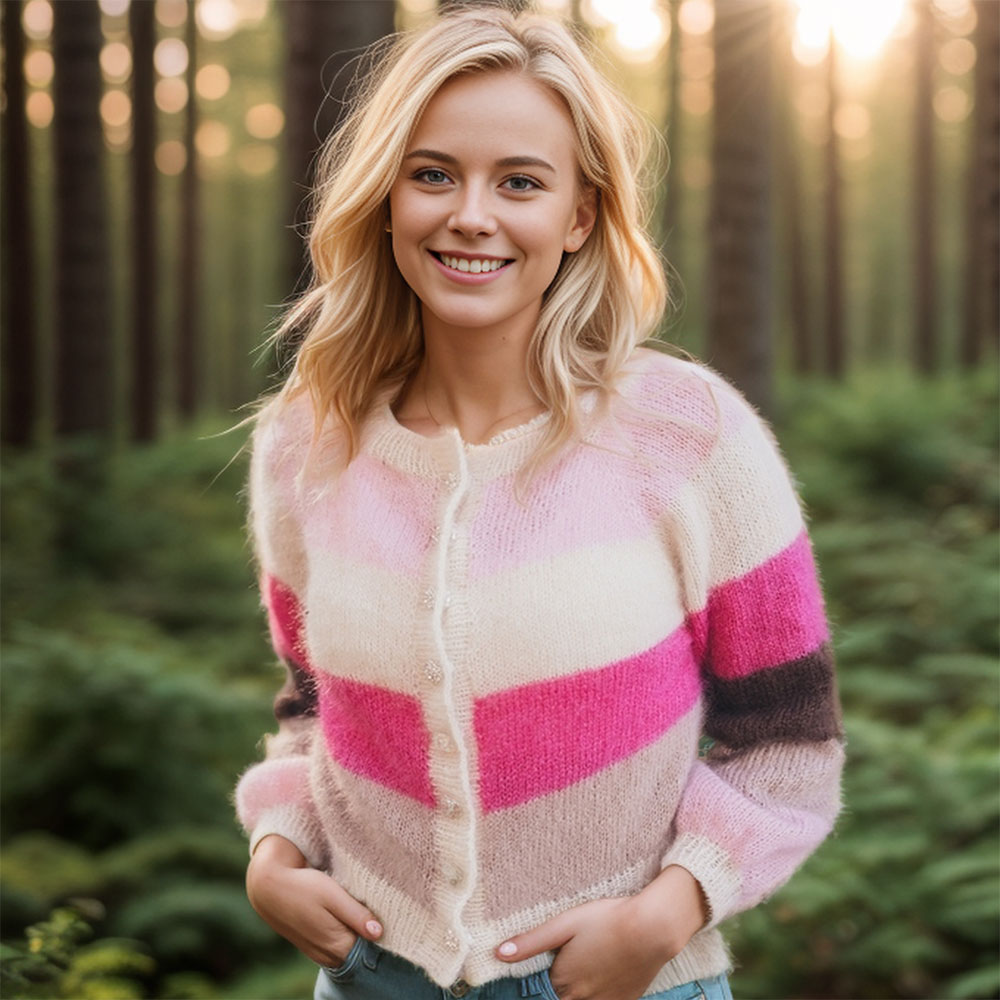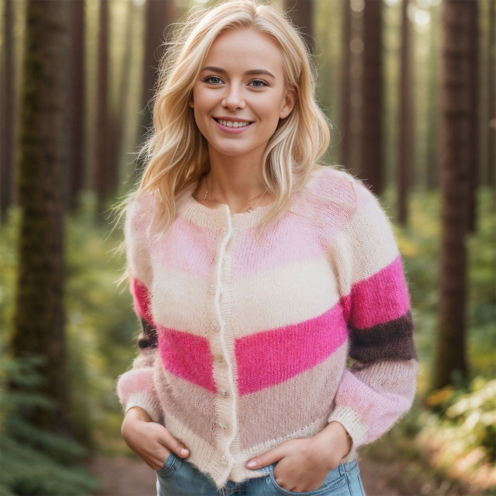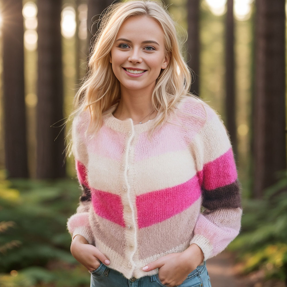 Sandras striped cozy jacket (Short version) knitting pattern