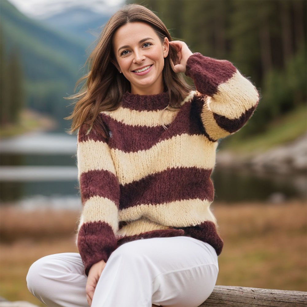10 sts in stockinette stitch with double yarn on 9 mm (US 13) needles = 10 cm / 4 inches