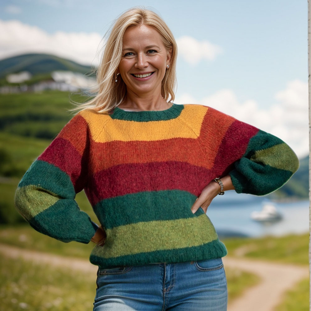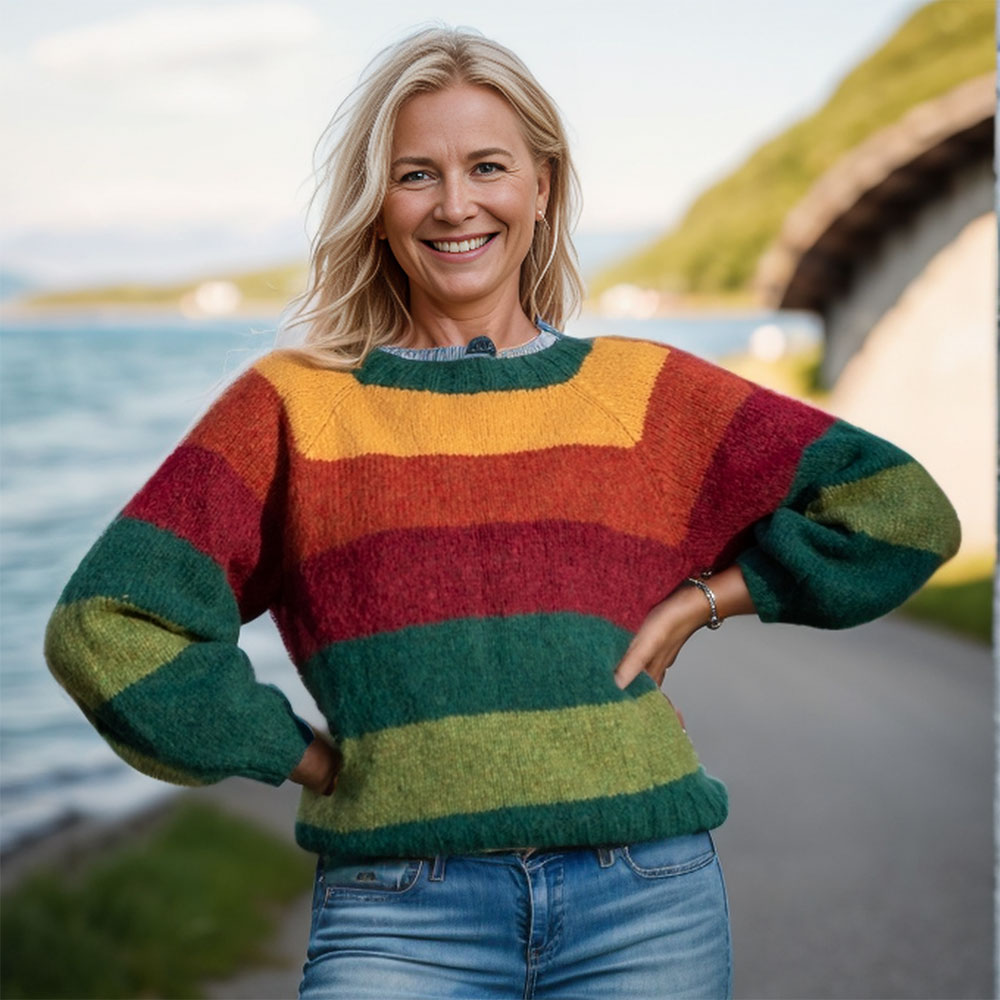 Striped and cozy sweater knitting pattern