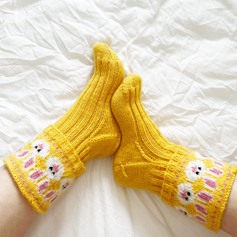 Sunny easter bunny socks knitting pattern