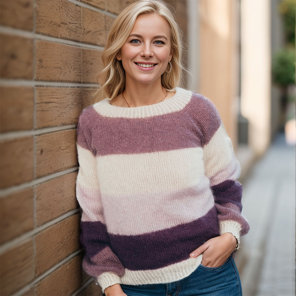 Drops Kid-Silk, 75% mohair, 25% silk, 25 g = 210 m / 229.7 yards, knitted with double yarn.