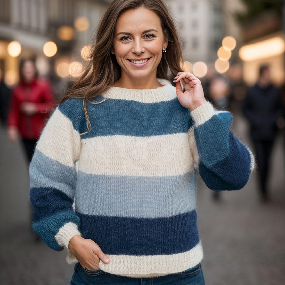 Short version with 4 stripes: 46 (48) 50 (52) 54 (56) 58 cm / 18.1 (18.9) 19.7 (20.5) 21.3 (22) 22.8 in