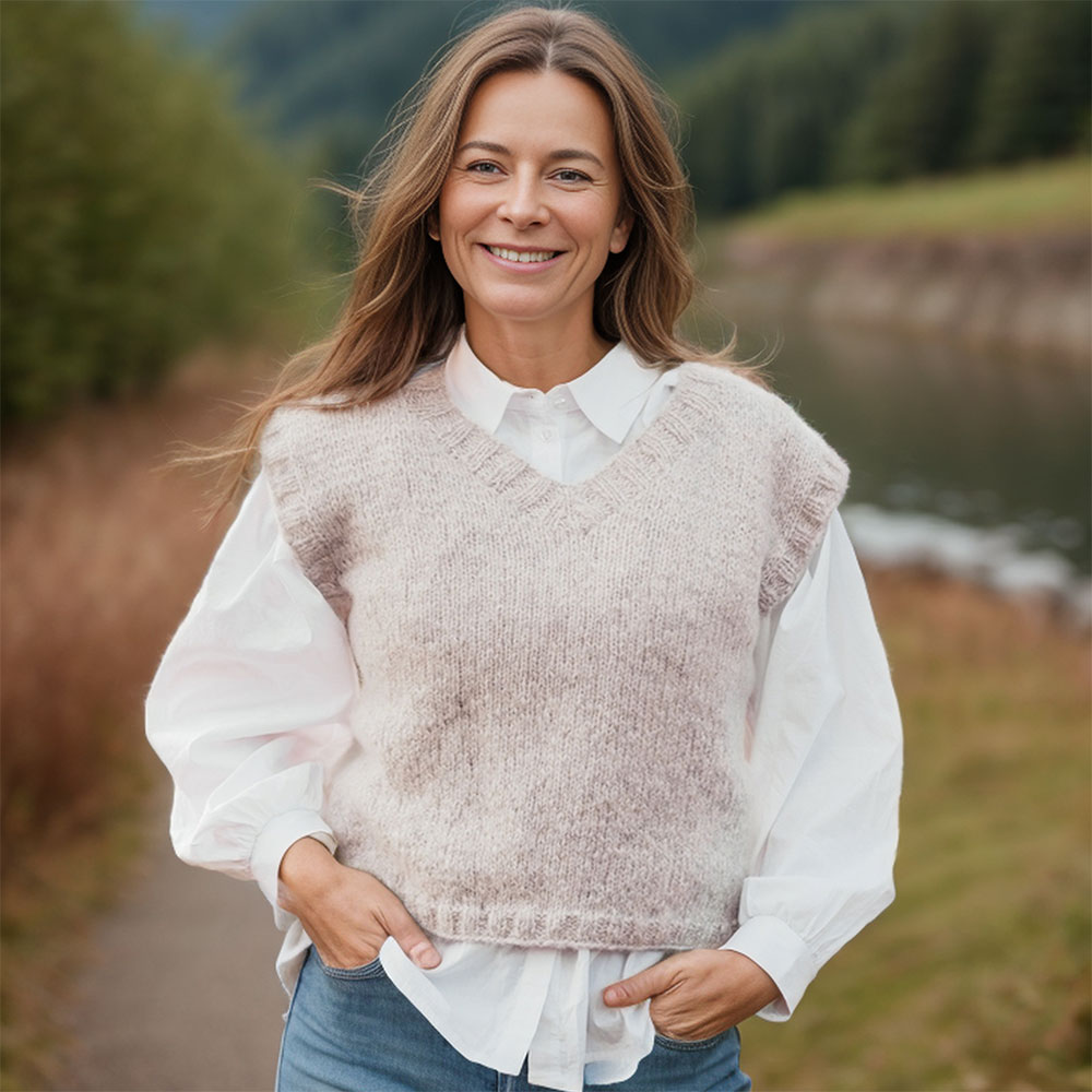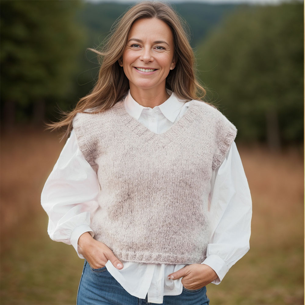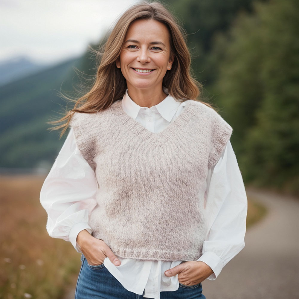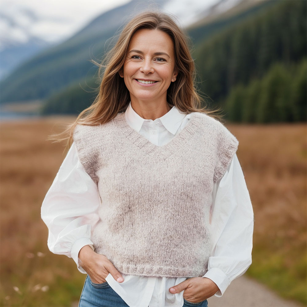 Drops Air from Garnstudio, 65% alpaca, 28% polyamide, 7% wool. 50 g = 150 m