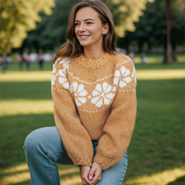 Chunky flower sweater knitting pattern